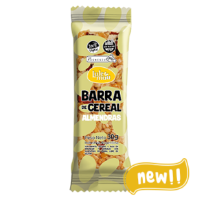 Sorbitol, polydextrose, crispines (corn flour, rice flour, sugar, trehalose (0.11g/portion), vegetable oil, salt, stabilizer INS 170i), roasted almonds, corn flakes (antioxidant INS 307, flavoring identical to natural cereals), texturized soy, soy flour, linseeds, stabilized magnesium citrate (glycine, anti-humectant INS 551), vegetable oil, emulsifier: INS 322, stabilizer INS 414, flavoring identical to natural almonds. Semi-sweet confectioner’s coating (sugar, hydrogenated vegetable oil, cocoa powder, salt, emulsifiers: INS 322, INS 442, INS 476; flavoring ethyl vanillin).